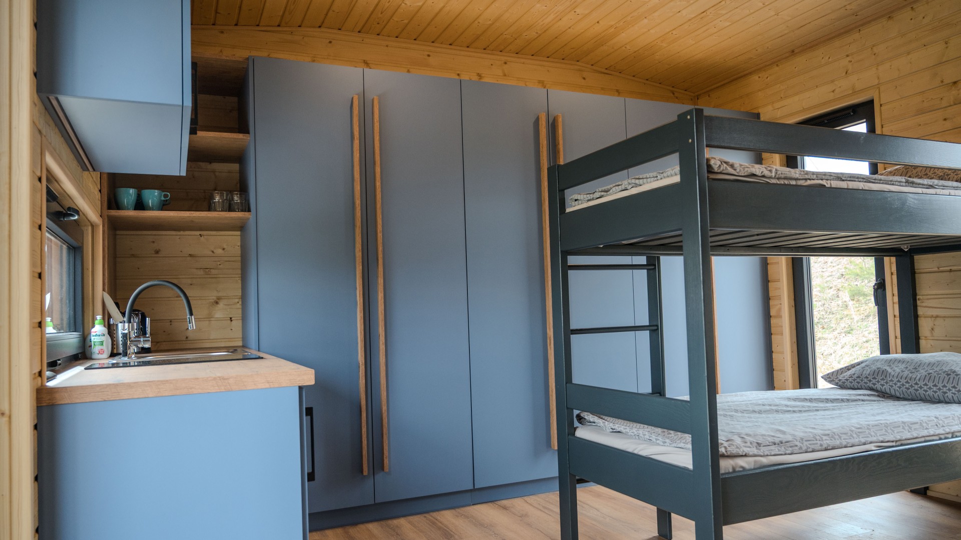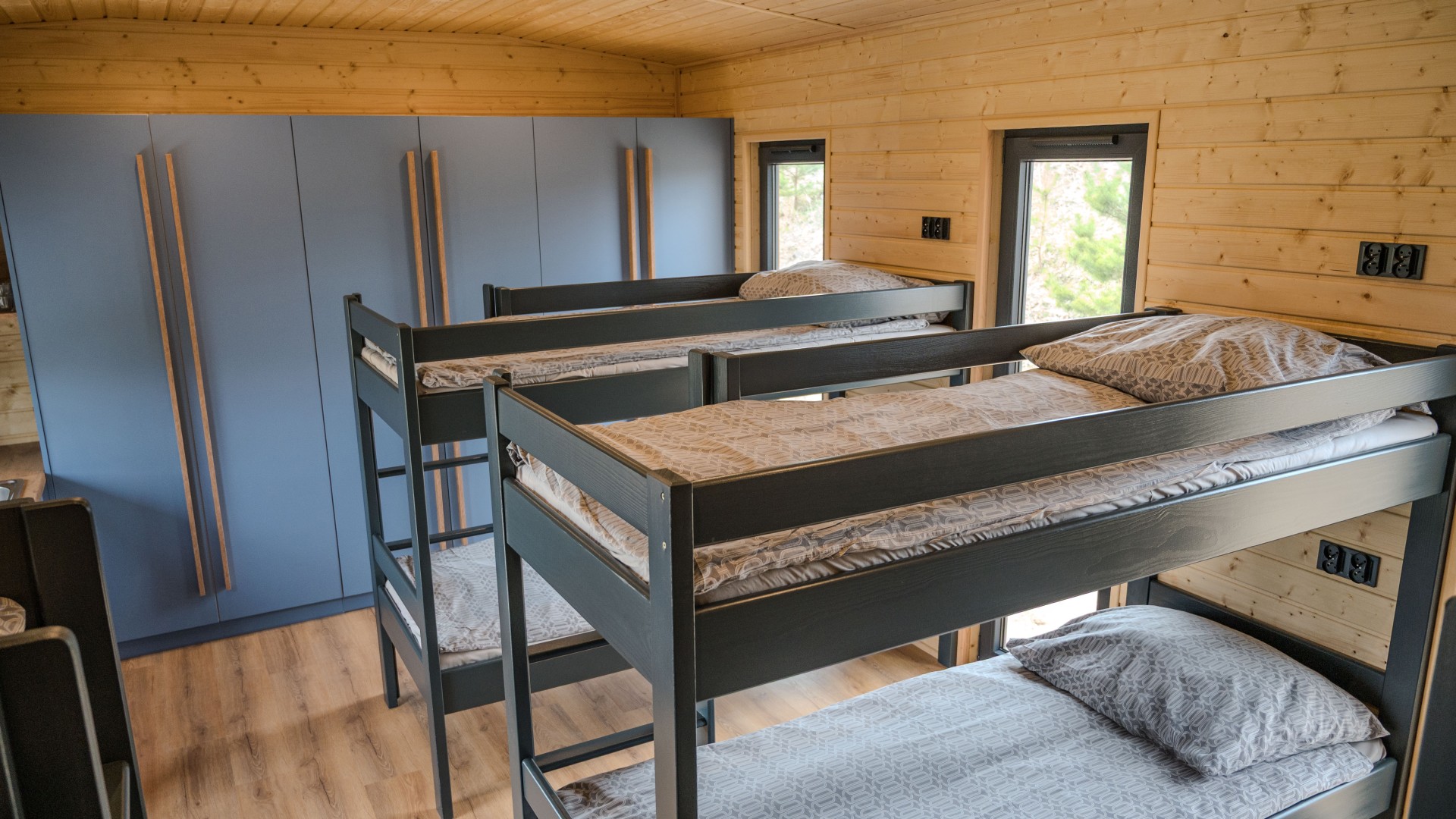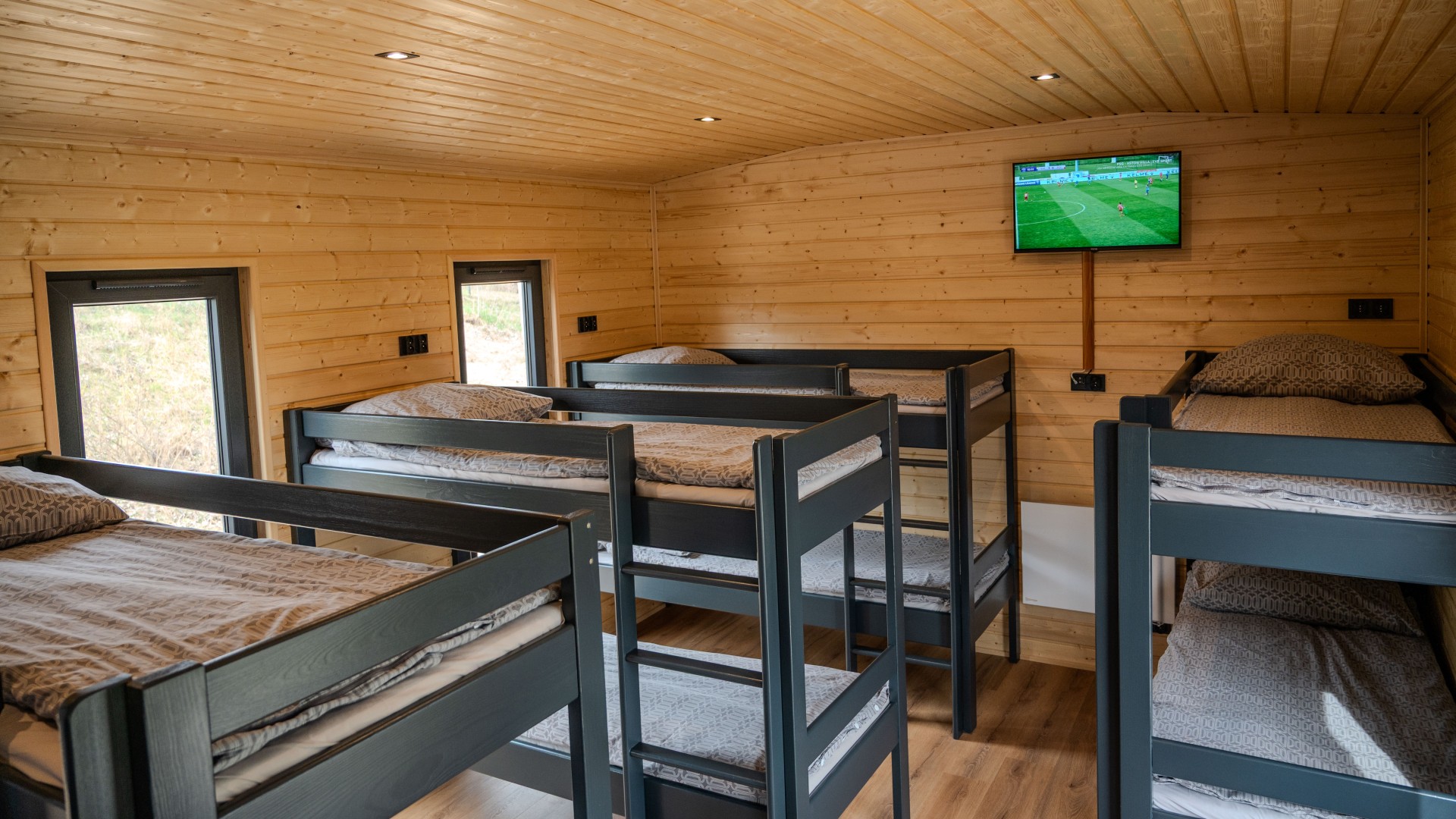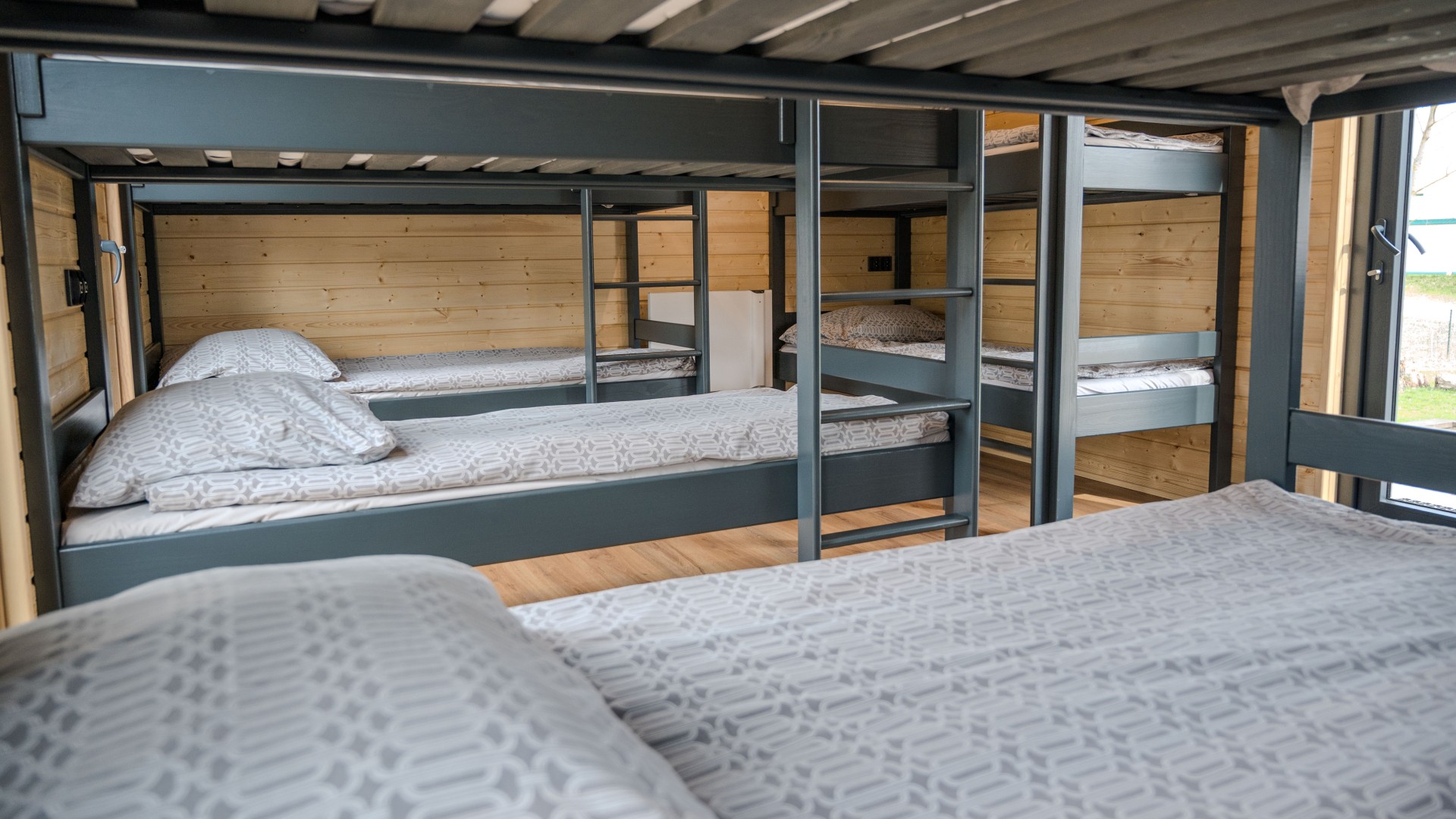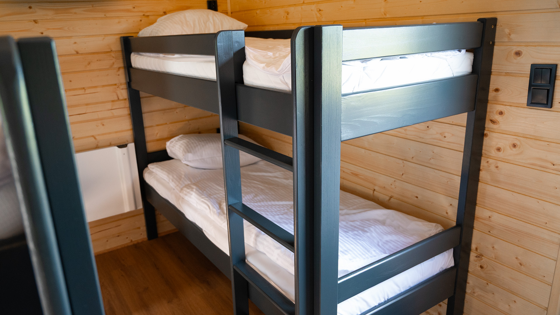 Od 2025 roku wprowadzamy do naszej oferty nowe domki w dwóch wariantach: Standard i Komfort. Domki wykończone są od środka boazerią a drewniane piętrowe łóżka dodają obozowego klimatu.