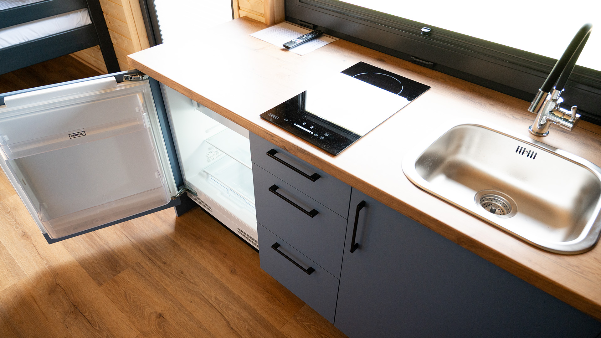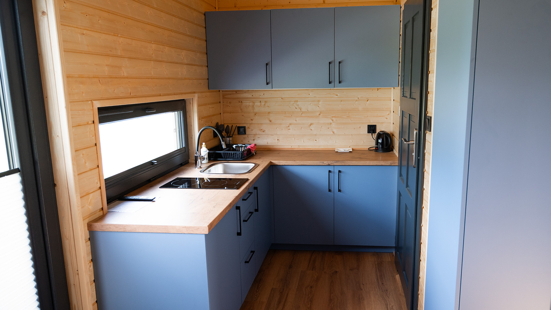 - mini salon z w pełni wyposażonym aneksem kuchennym,